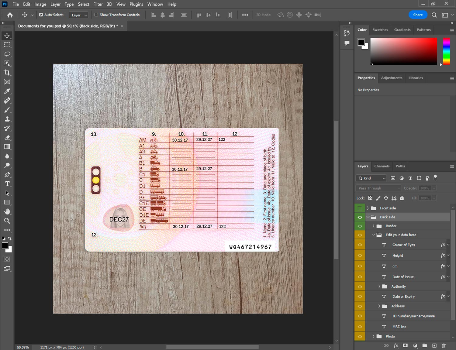 -UK driving licence generator template front.psd + back.psd