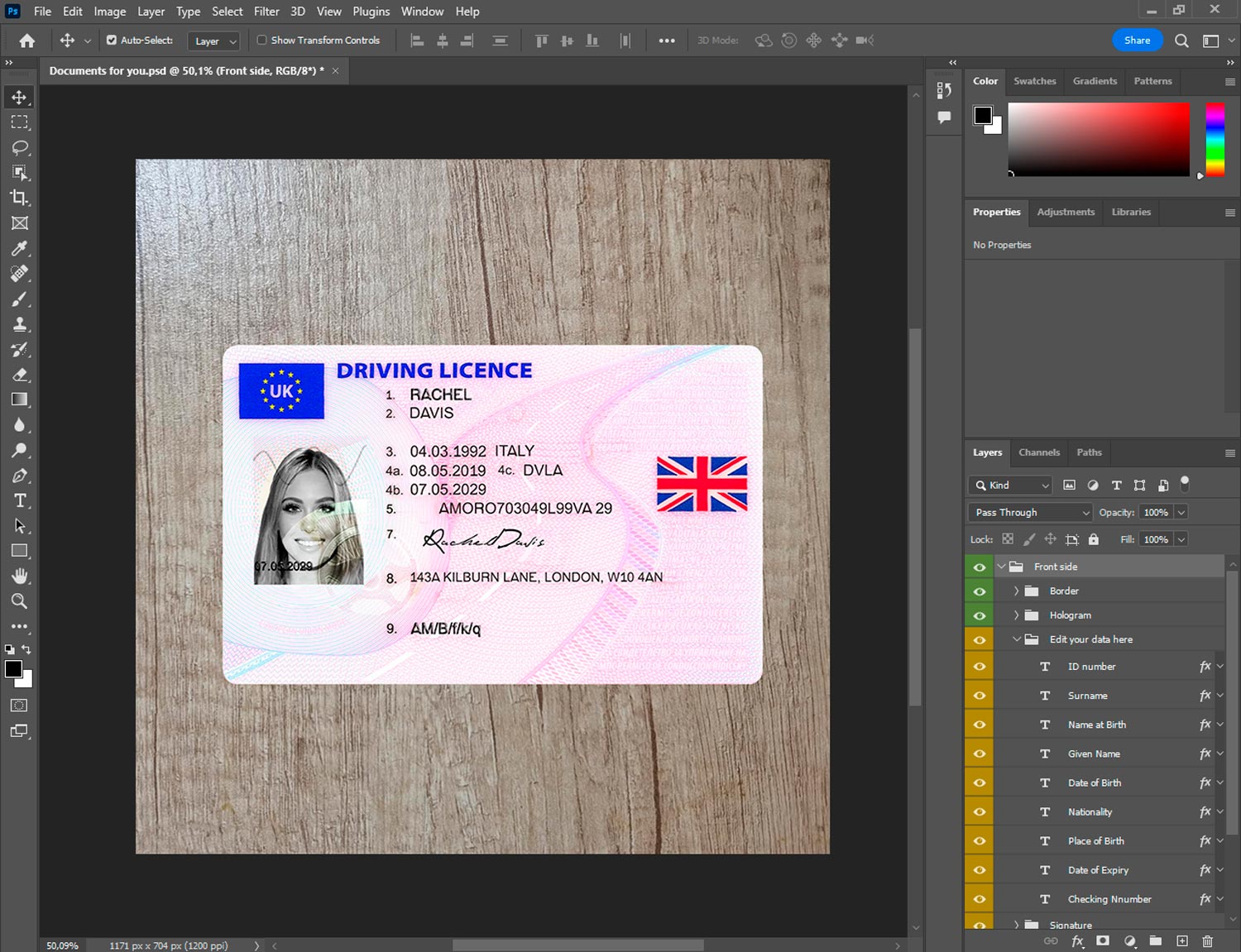 What’s included in UK driving licence generator template package: