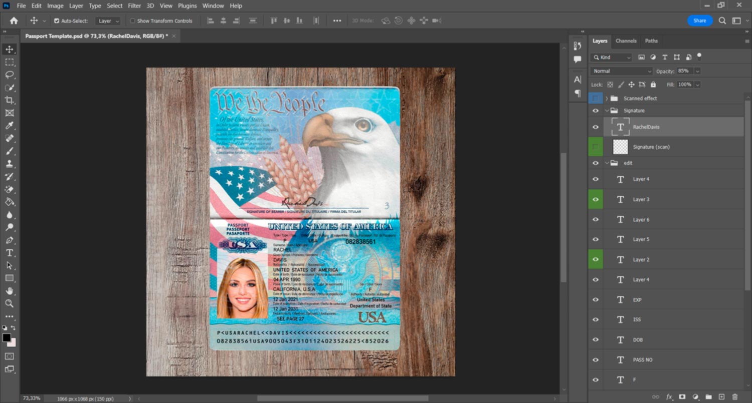 For example, the Editable US Passport template can be used for reading purposes, but it works fine for online verification of any sites for example:
