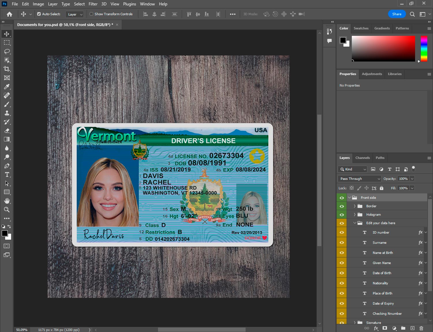 High-Res PSD Vermont Driver’s License Template – USA, 300 DPI