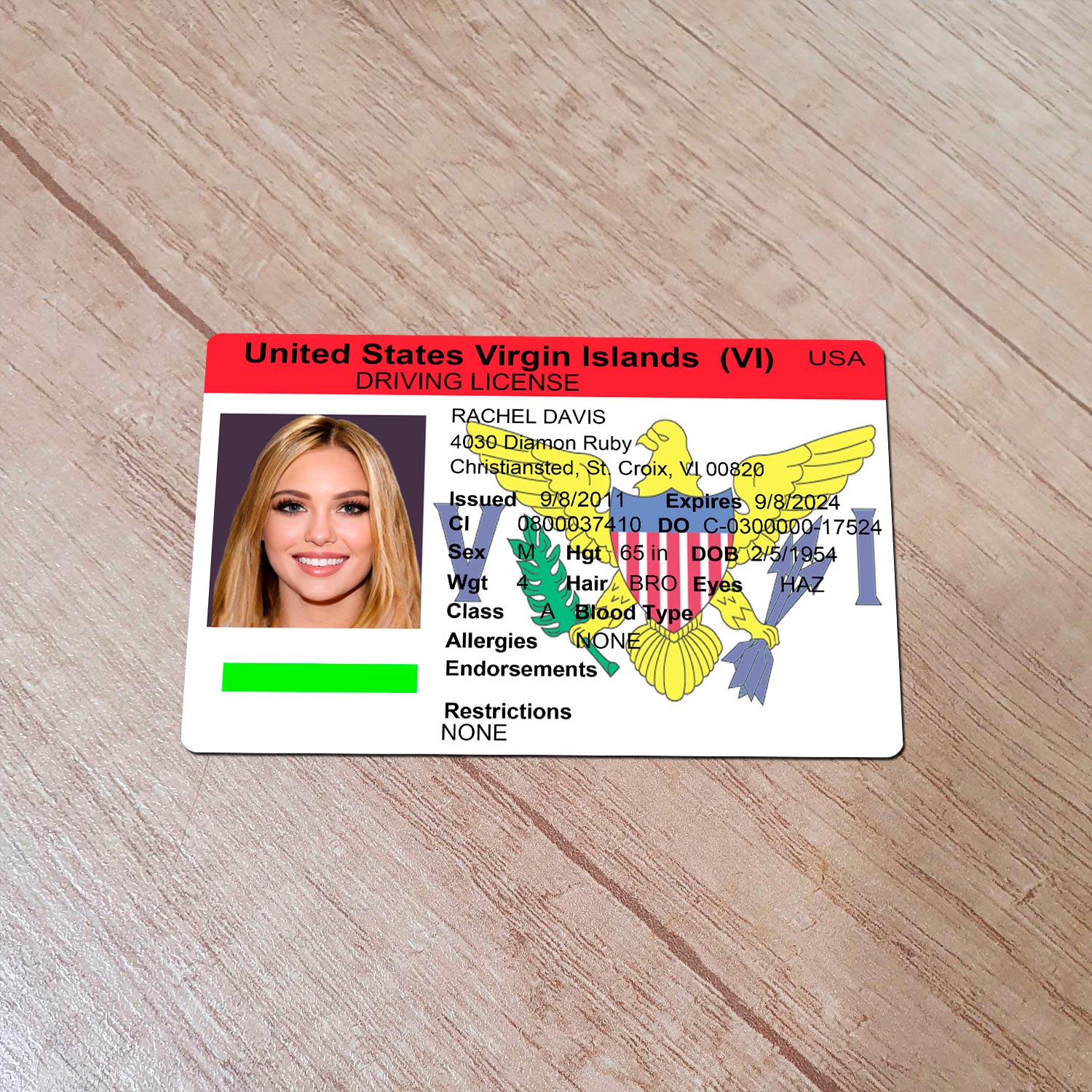 Virgin Islands (VI) USA Driver Licence Template