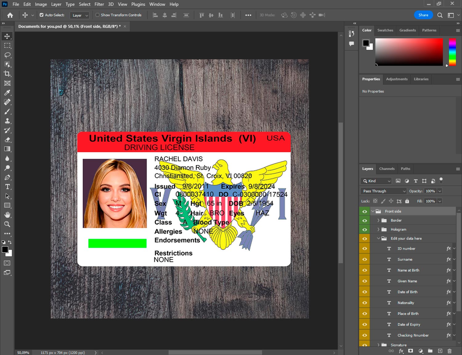 Driver’s License PSD Pack – Virgin Islands (Fonts + Guides)